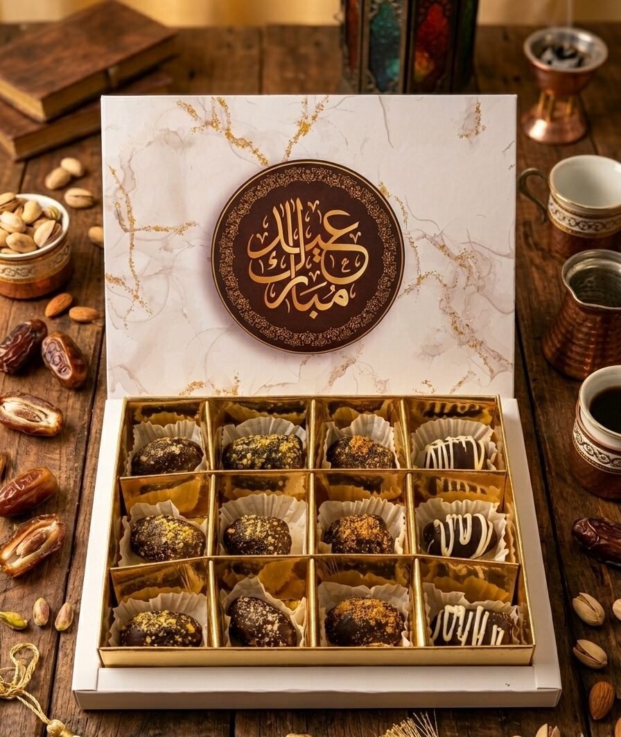 Ramadan Blessings Box – 12 Pcs Assorted Chocolate Dates